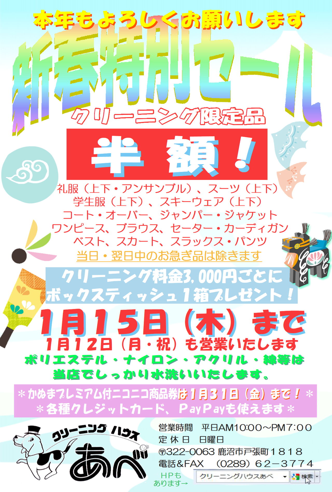 昨年は当店をご利用いただきありがとうございました。本年もよろしくお願い申し上げます。