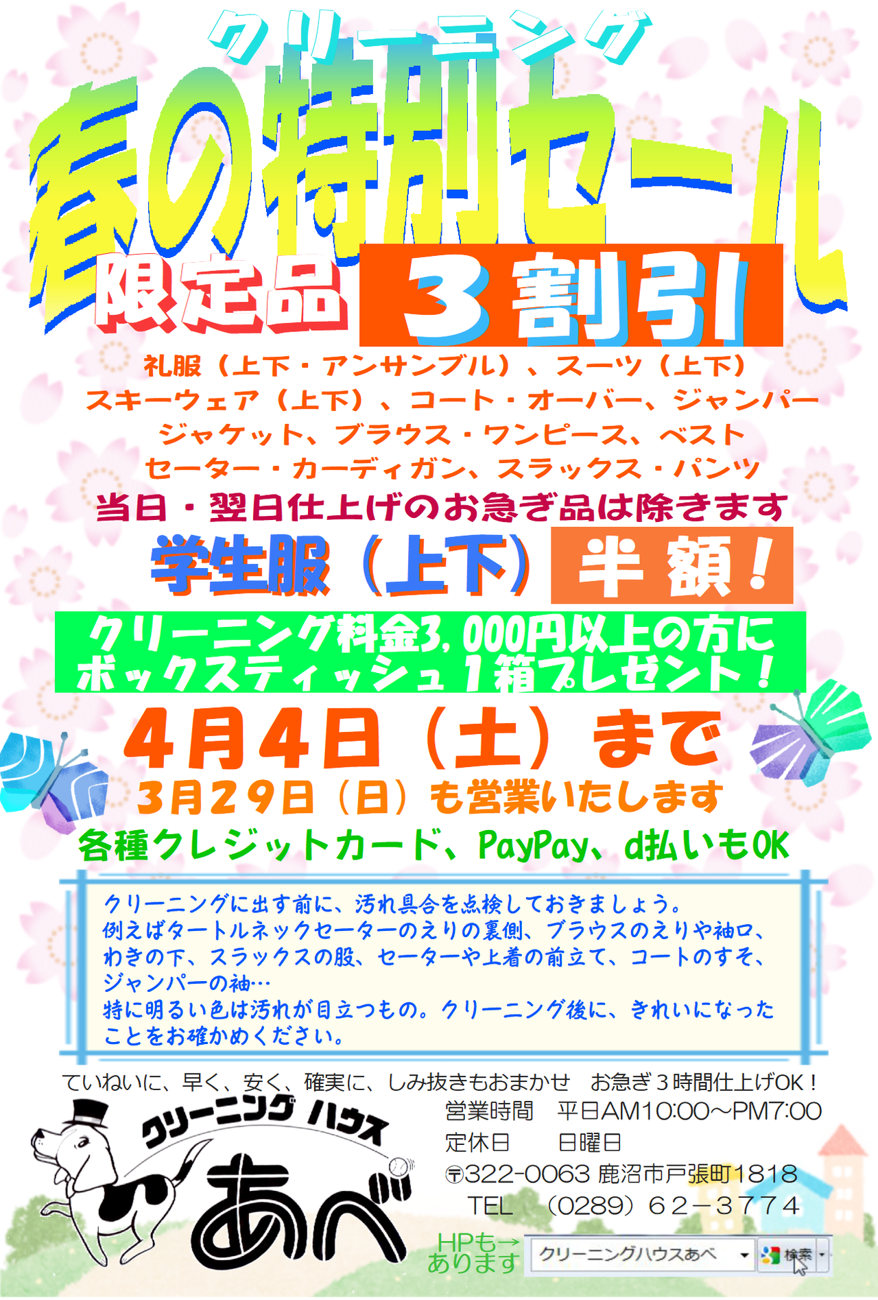クリーニングのことなら、栃木県鹿沼市のクリーニングハウスあべにお任せください。
